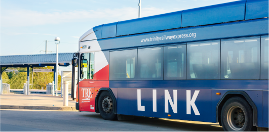 For full details, go to TRE LINK to DFW Airport – Trinity Railway Express.