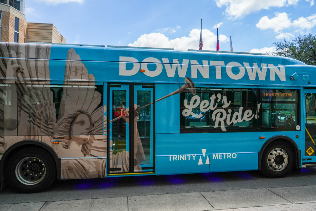 Thanks to partnerships with Downtown Fort Worth Inc. and Visit Fort Worth, riding the Blue Line is free year-round. The route offers easy connectivity to buses, Trinity Metro TEXRail, Trinity Railway Express and Trinity Metro Bikes at Fort Worth Central Station and Fort Worth T&P Station.