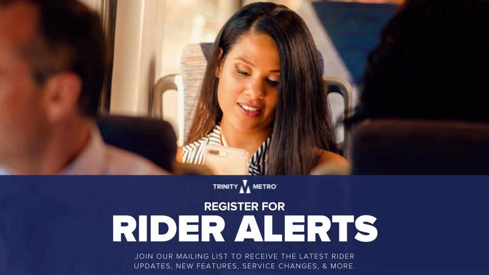 Connect with Trinity Metro March 29, 2022January 11, 2024 To sign up for updates or to access your subscriber preferences, please enter your contact information below. Subscription Type EmailSMS/Text Message Wireless Number 1 (US)1 Email Address