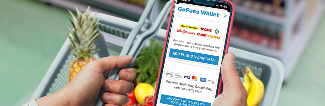 In addition, GoPass users may utilize Apple Pay, Google Pay or a credit or debit card to add funds at anytime, anywhere.