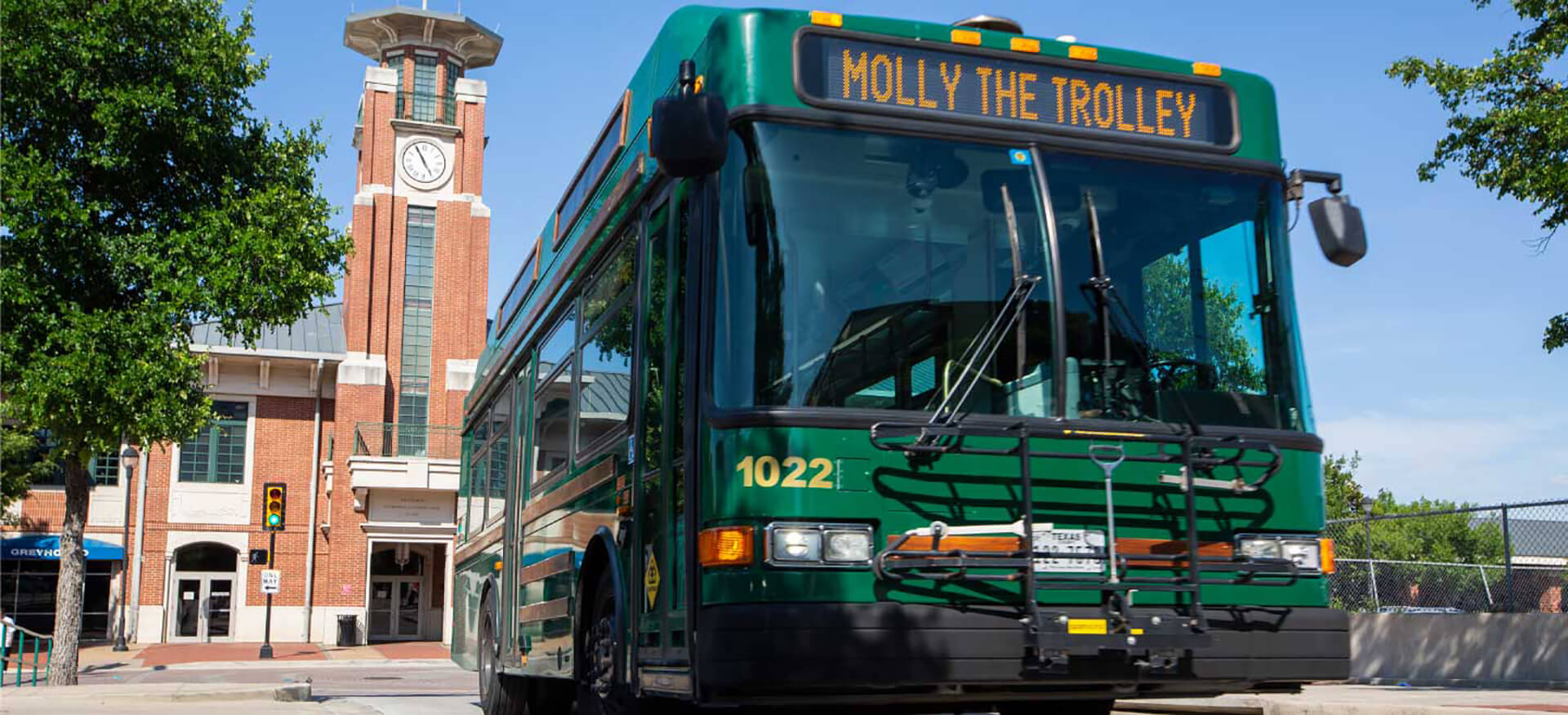 Lasso Molly the Trolley for a FREE ride around bustling downtown Fort Worth.