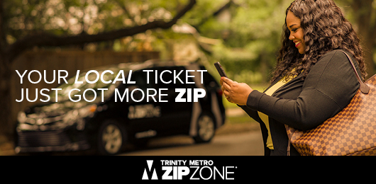 As of Sunday, ZIPZONE fares are included in the local daily, weekly, monthly and annual tickets. Anyone who has purchased one of these tickets can ride ZIPZONE for free, including transfers to and from Trinity Metro bus routes, TEXRail and Trinity Railway Express in Tarrant County. This offer does not apply to regional tickets.