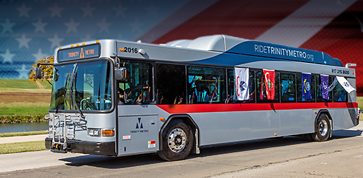 In 2023, Trinity Metro is offering reduced ticket pricing for veterans to show appreciation for their service. Beginning Jan. 1, veterans will receive a reduced fare on local tickets by showing proof of veteran status.