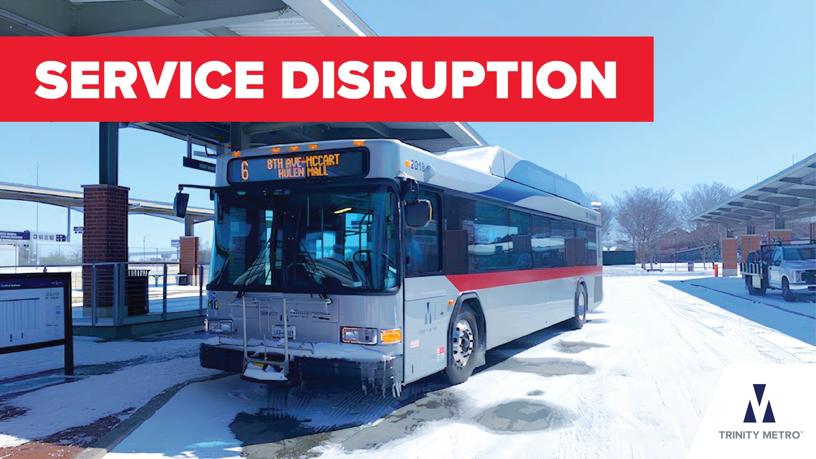With weather conditions intensifying, Trinity Metro is activating its winter weather service schedule and ice detours as noted at the base of this message for the safety of our customers and employees.